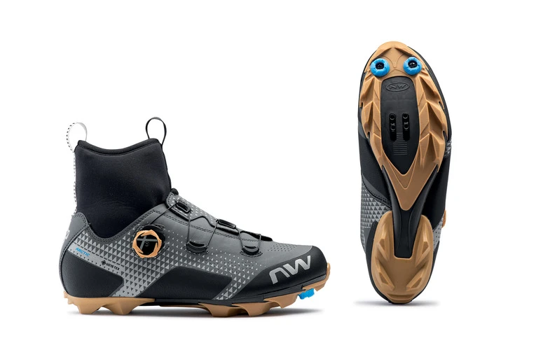 Power transmission is given from the Jaws Carbon Reinforced sole with a 8.0 stiffness index and a natural rubber tread heel for extreme grip on any surface. The upper has the overlap construction, which wraps the foot without any pressure point, helping to transfer every watt of power, eliminating the dispersion of energy. Furthermore, the TPU reinforcements ensure a 360 ° strategic protection along the entire upper. An easy and even closure system is guaranteed by the SLW3 dial, the only one with a step-by-step release, which allows a millimetric adjustment of the shoe in a fast and intuitive way. The new Easyfit Climaflex collar combines the extreme flexibility of the Rattler® Gore-Tex membrane with the high thermal insulation of Neoprene, for more mobility and protection. The wrapping and positioning of the heel are enabled by an anatomic seat and a solid thermoformed counter, in addition to the Arctic 4Layer insole made with Eva + Aluminum + Eva + Pile, which guarantees excellent thermal insulation. For safety, the 360° reflective inserts provide added visibility on the road.