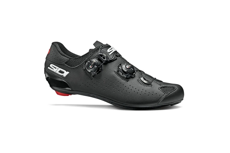 De Genius is intussen aan zijn 10de versie toe! Door de jaren heen werd deze schoen alsmaar verbeterd en gefinetuned met als resultaat een subliem goed zittende race-schoen! De nieuwe Genius 10 heeft net als zijn grote broer 2 draaisluitingen gekregen en de hiel en de soft-instep is verbeterd. De Sidi Genius 10 is een comfortabele en kwalitatieve raceschoen. De Microfibre Microtech waaruit de schoen gemaakt is, is duurzaam, licht, ventilerend en is bovendien ook waterafstotend. Door het Soft Instep systeem is het gemakkelijk om de schoen aan- en uit te doen. Bovendien zorgt het systeem ervoor dat de schoen goed rond de voet aansluit. Met de 2 tecno-3 sluitingen kan je de spanning perfect regelen. De vernieuwde hiel is extra verstevigd waardoor deze zijn vorm zal behouden en de hiel stevig in de schoen zit. De carbon composite 20 zool is stijver, steviger en zal ook een grotere duurzaamheid hebben. Verder is de zool afgewerkt met een vervangbaar anti-slip hieltje.